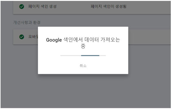 📌 그러면 구글 색인에서 데이터 가져오는 중이라고 뜹니다.