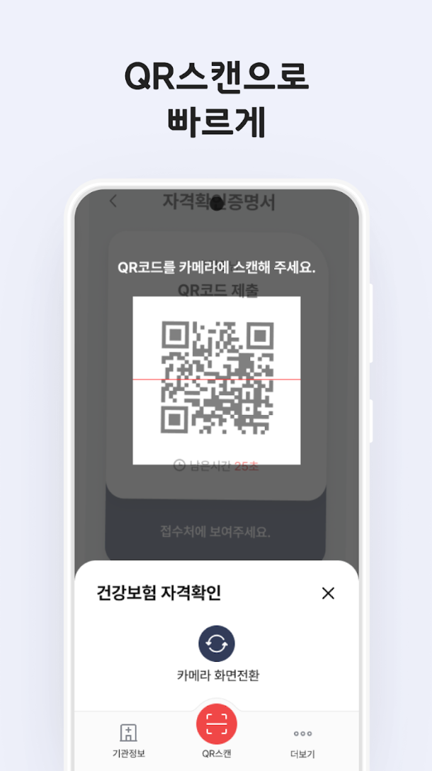 모바일 건강보험증을 앱에 다운받아 설치하셔야 합니다. 설치가 완료되면 본인인증을 한 후에 사용이 가능합니다. 얼마 안걸리니 해보시기 바랍니다. 메뉴는 단순한데요. 건강보험증에 성명, 생년월일, 증번호, 조회일자가 있고 QR제출메뉴에서는 QR 또는 바코드로 본인인증을 할 수 있습니다.
