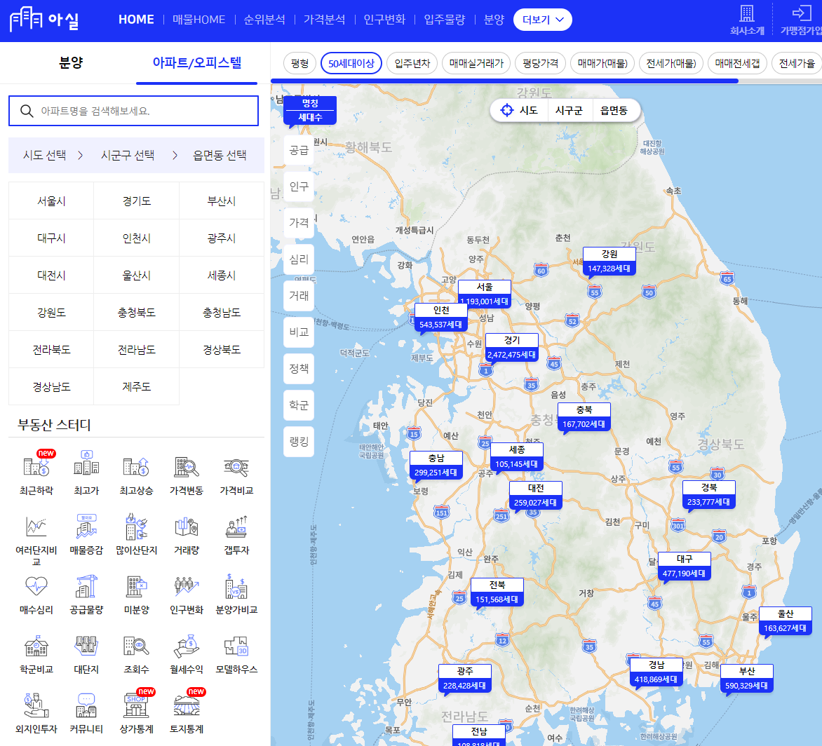 아실에서는 아파트 유형, 면접, 가격대 등 다양한 기준 설정으로 부동산 매물 시세정보를 한눈에 찾아 볼 수 있습니다.
