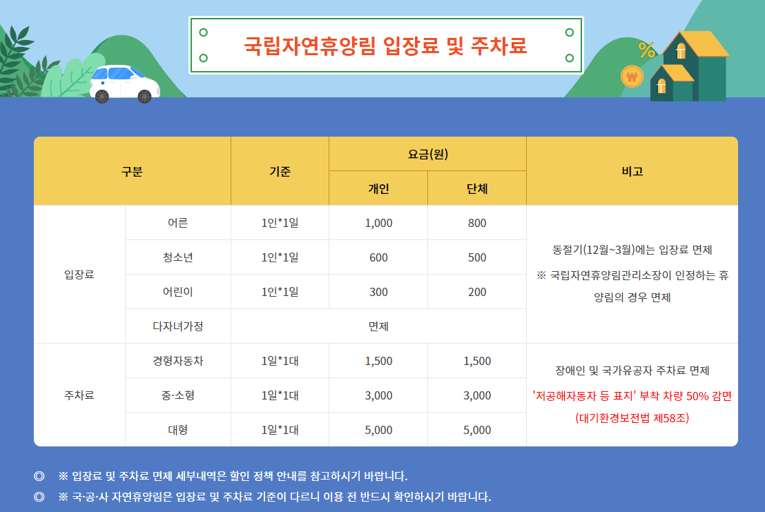 3. 입장료 및 주차료
