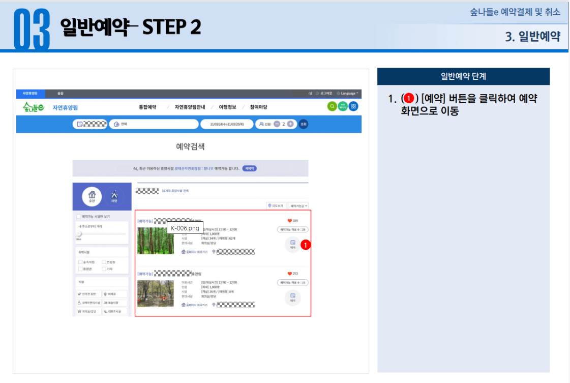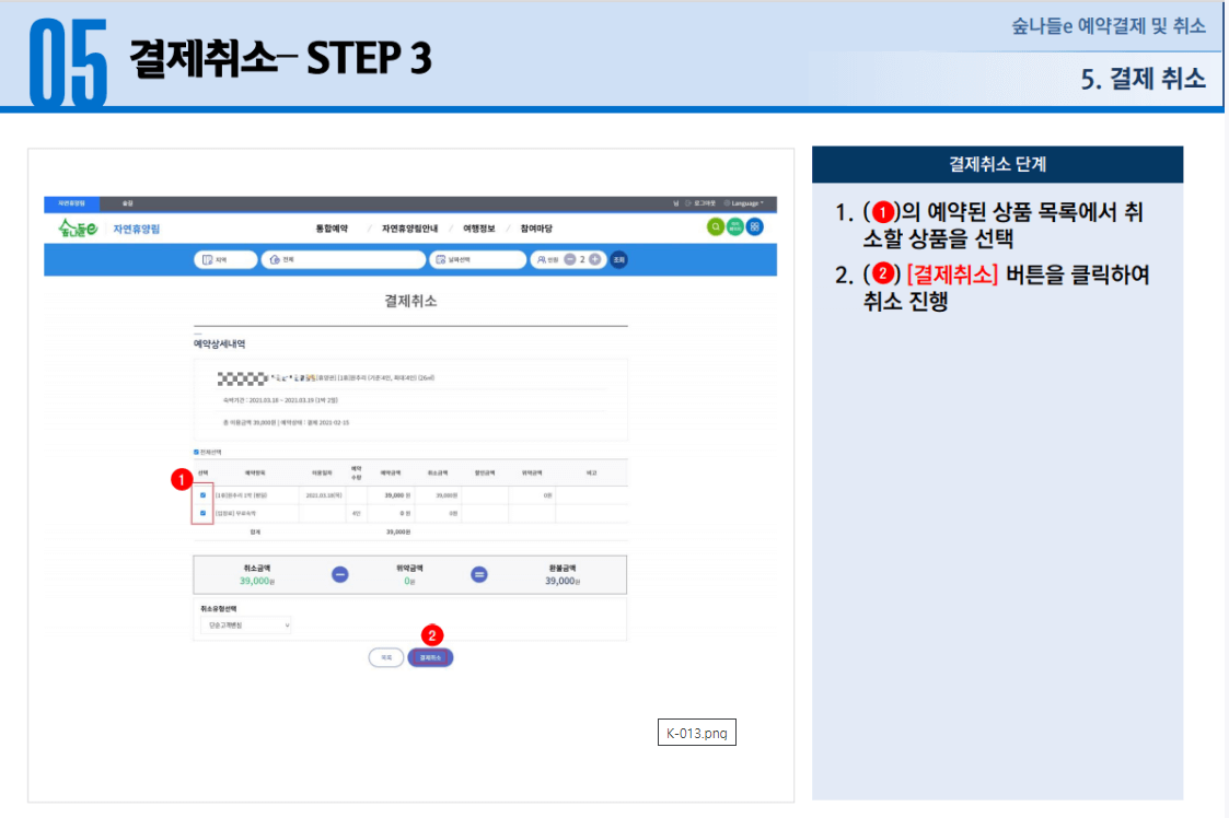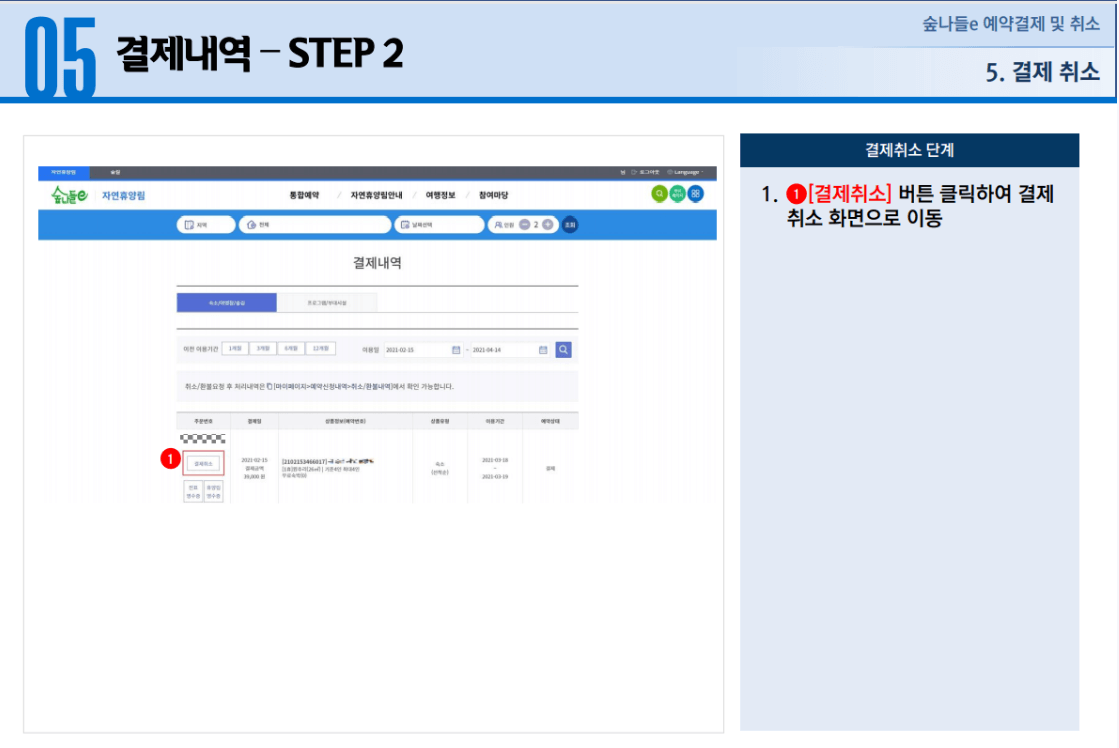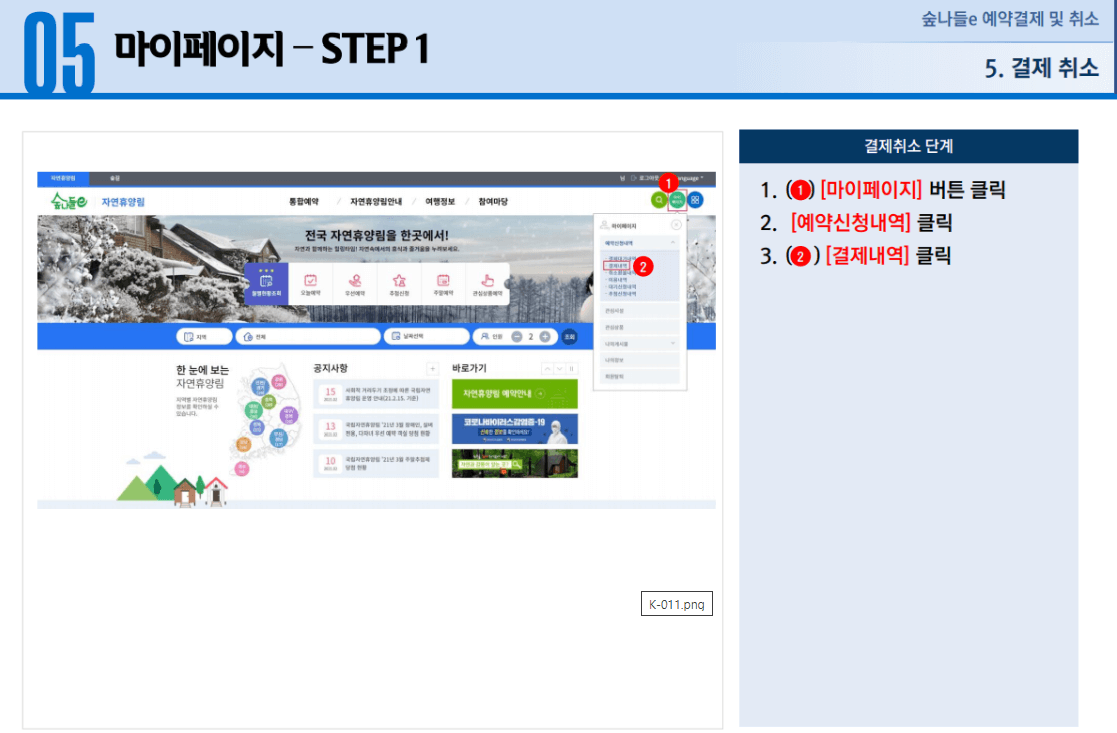 1. 자연휴양림 예약, 결제 및 취소 방법