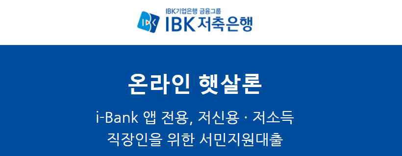 IBK저축은행 온라인햇살론은 저신용, 저소득 직장인을 지원하기 위한 직장인 서민대출 상품입니다. i-Bank 앱을 통해 비대면으로 간편하게 신청할 수 있습니다.
